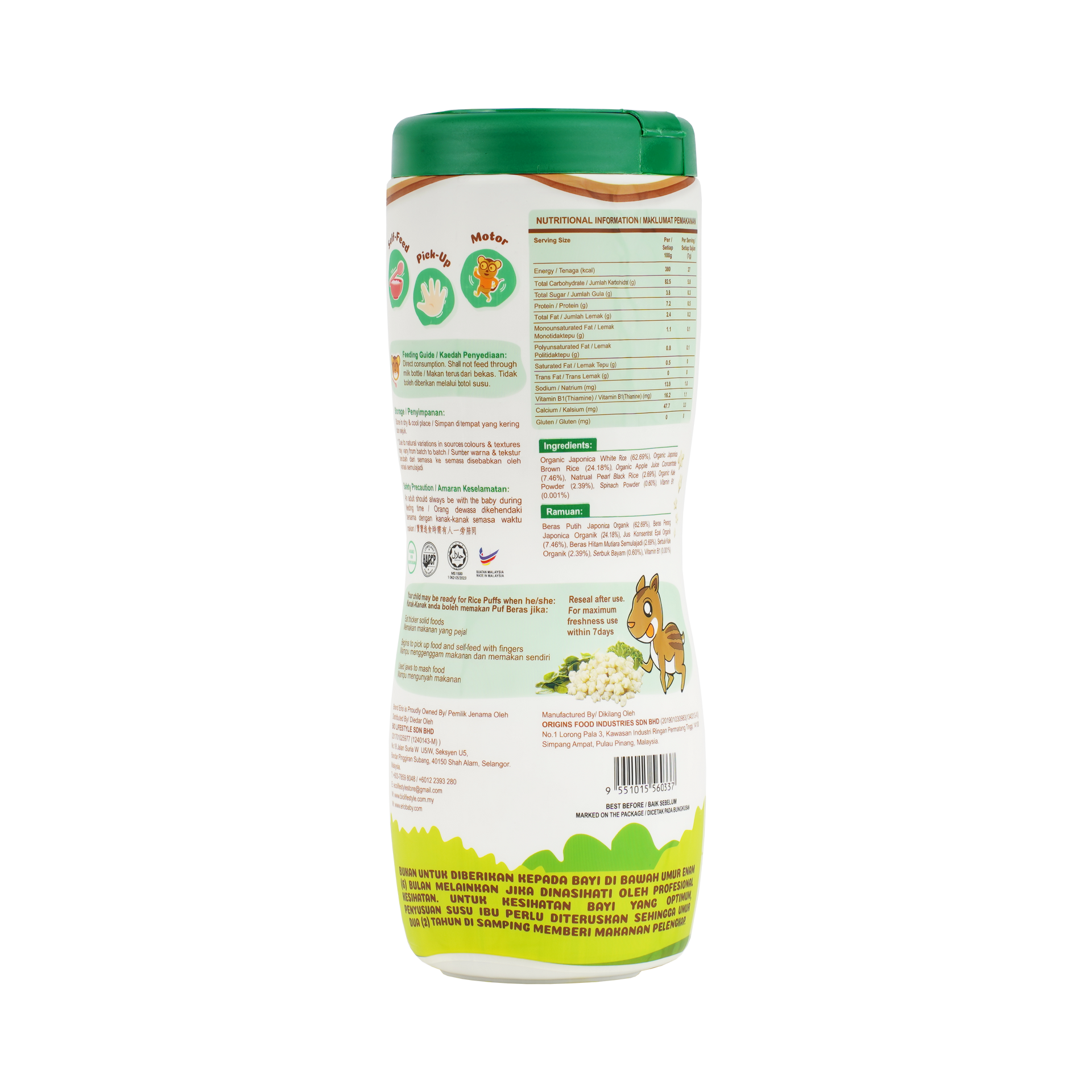 A healthy power duo, these puffs offer the benefits of leafy greens like kale and spinach. They're a gentle introduction to a healthy diet and a great way to add essential vitamins and minerals to your baby's growing body.