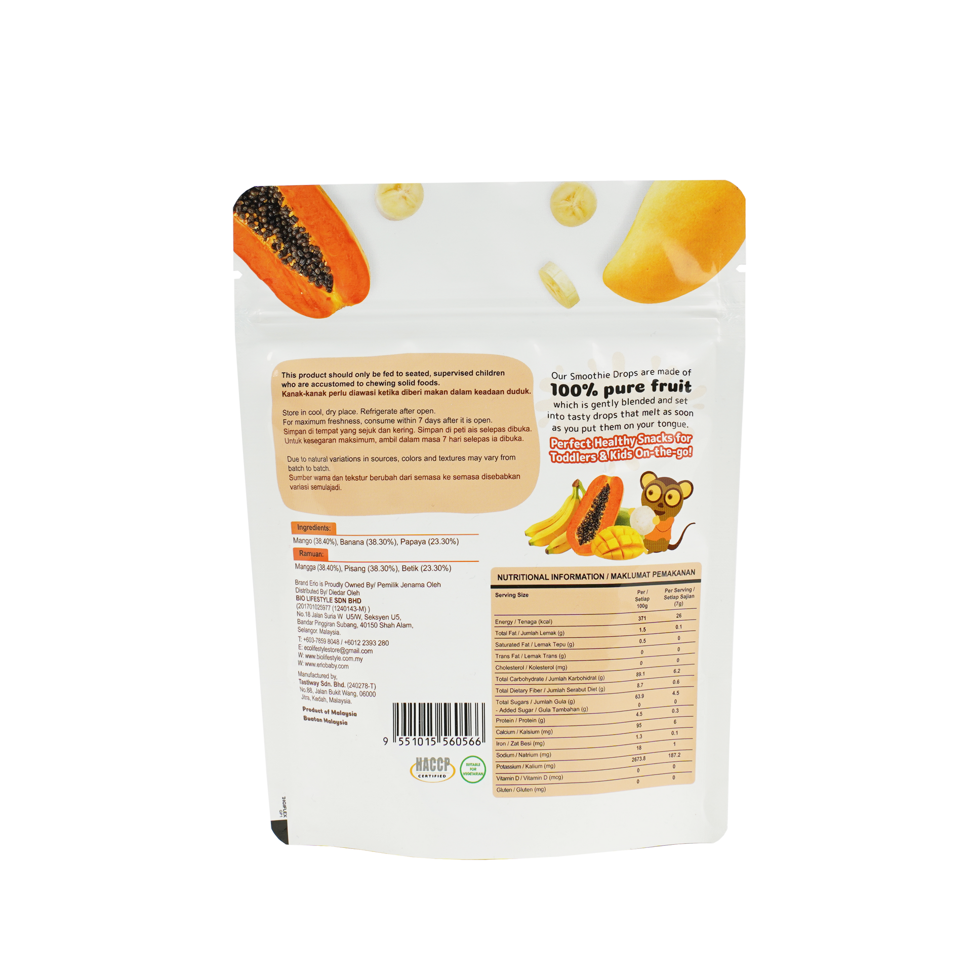 This tropical treat bursts with the sunshine flavors of mangoes, bananas, and papayas. Packed with vitamins A and C to support your toddler's healthy development, these drops are a delicious way to add variety to snack time. Free from added sugar, salt, gluten, and dairy, they're perfect for toddlers with allergies or dietary restrictions.