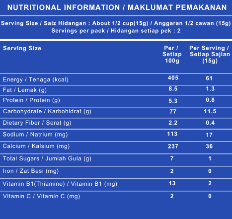 Organic Corn Flour (25%), Organic Riceberry Rice (24.5%), Organic Jasmine Rice (22%), Organic Strawberry Powder (11.6%), Organic Blueberry Powder (6.5%), Organic Apple Powder (4%), Organic Amaranth (2.2%), Organic Quinoa (2.2%), Organic Rice Bran Oil (2%)