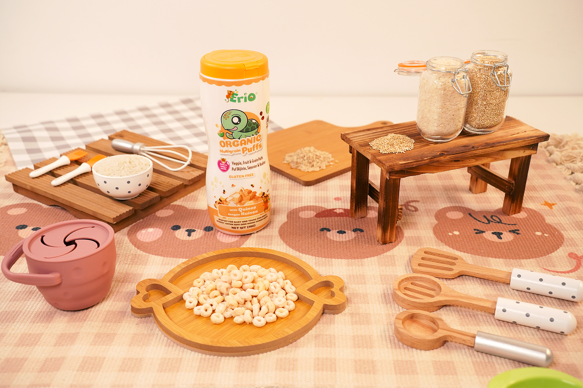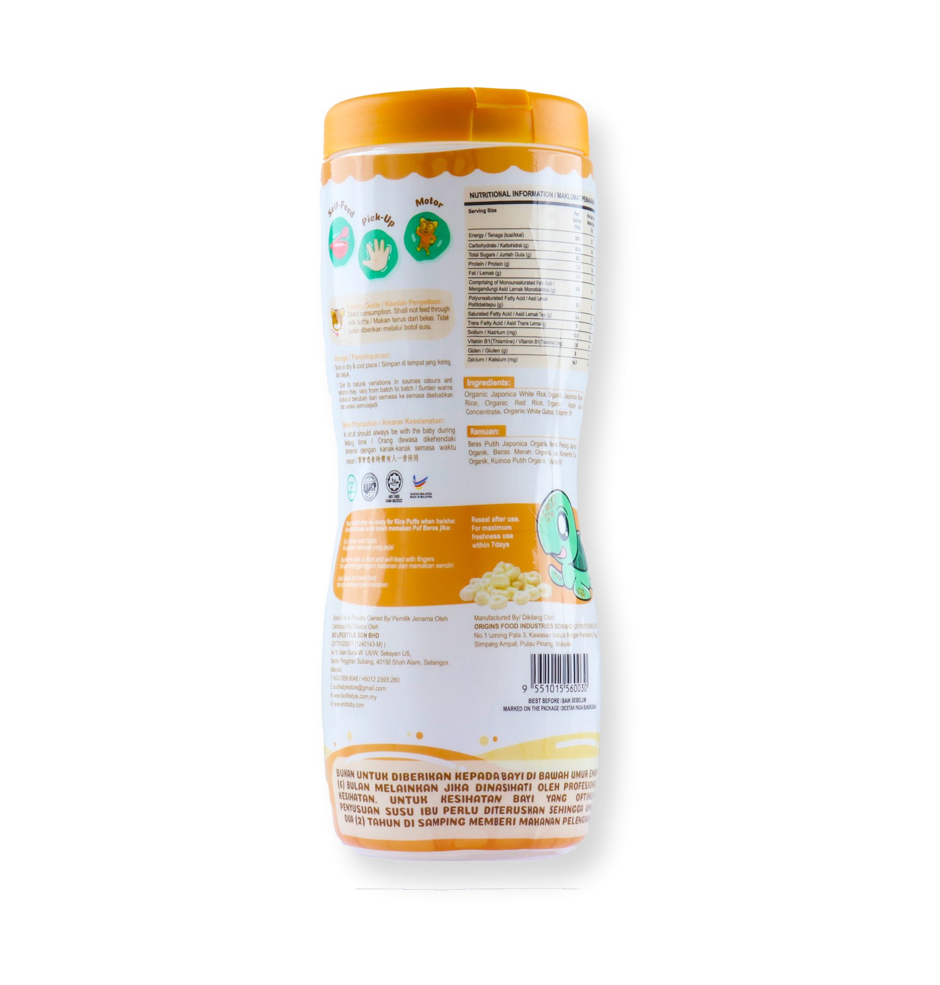 Enjoy the tender crunch of organic whole grain and quinoa puffs. A great source of high-quality fiber and protein, these puffs provide your growing baby or toddler with nutrients that support growth. Give the gift of good nutrition with every bite!