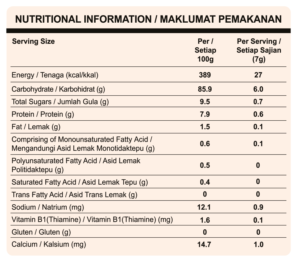 Organic Japonica White Rice, Organic Japonica Brown Rice, Organic Red Rice, Organic Apple Juice Concentrate, Original White Quinoa, Vitamin B1