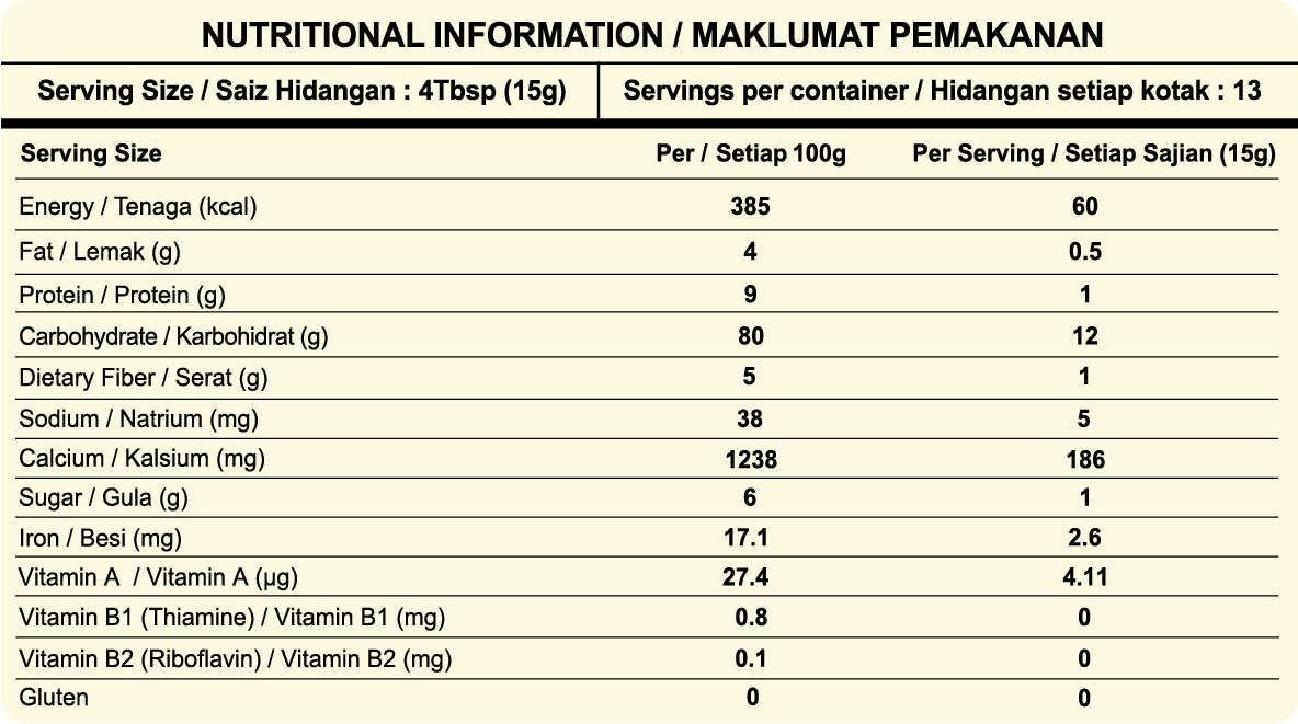 Vitamin A, Vitamin B1, Calcium, Iron, Omega-3s